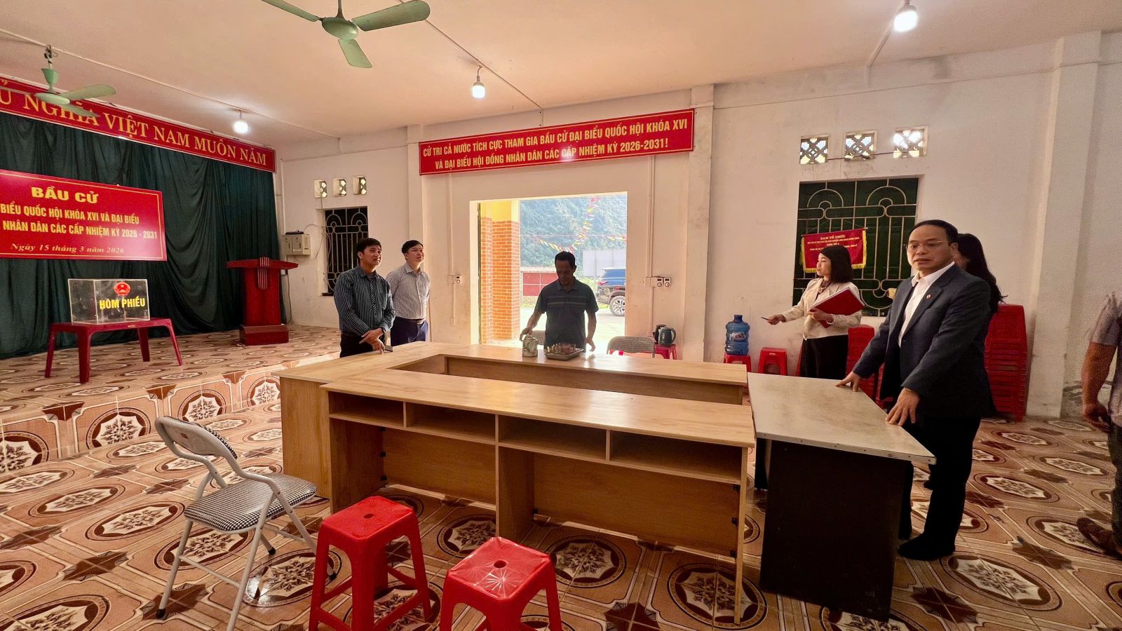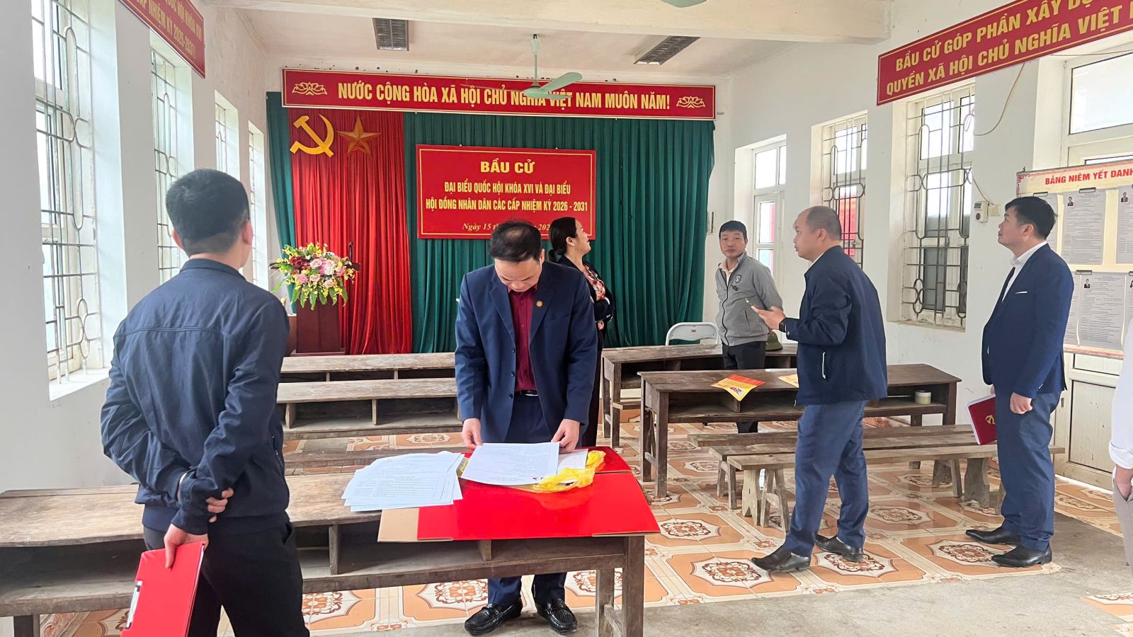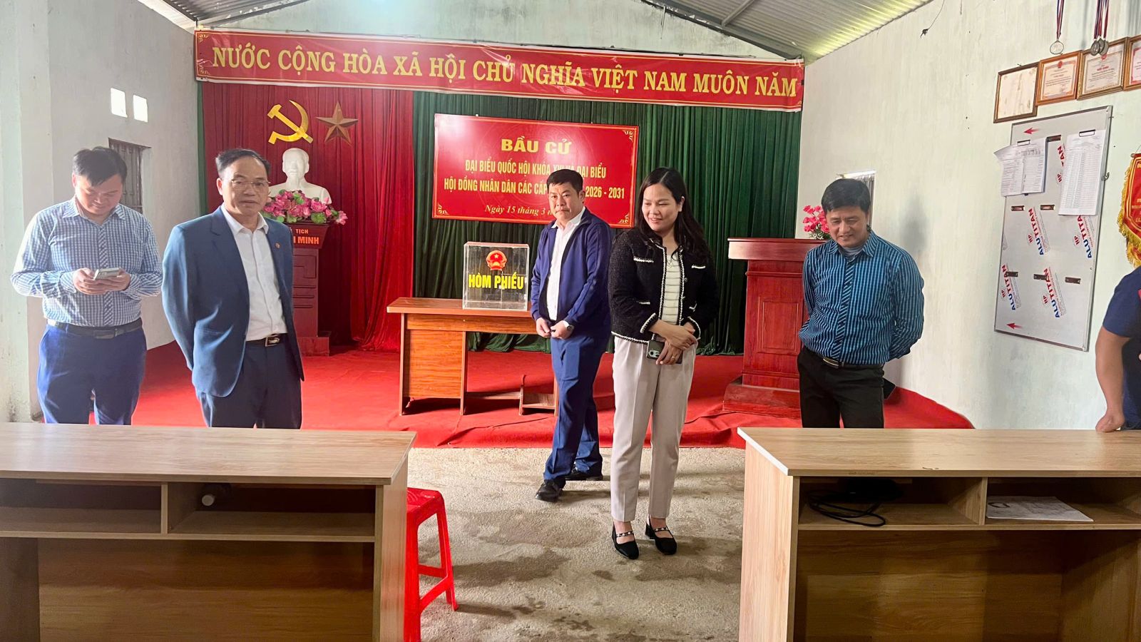Tại các điểm giám sát các đơn vị bầu cử trên địa bàn xã, Đoàn ghi nhận các tổ bầu cử đã triển khai công tác trang trí nghiêm túc, đúng quy định; bố trí khu vực niêm yết thuận tiện để cử tri theo dõi, tra cứu thông tin. Việc niêm yết danh sách cử tri và danh sách, tiểu sử tóm tắt của người ứng cử đại biểu Quốc hội khóa XVI và đại biểu HĐND các cấp nhiệm kỳ 2026–2031 được các ban bầu cử, tổ bầu cử thực hiện đúng thời gian theo luật định; danh sách được in ấn rõ ràng, đầy đủ; hồ sơ ứng cử viên được niêm yết công khai, đúng mẫu, đầy đủ nội dung theo quy định. Xã đã thành lập 6 đơn vị bầu cử với 18 khu vực bỏ phiếu; thành lập đầy đủ các Ban bầu cử, Tổ bầu cử và các tiểu ban phục vụ công tác bầu cử nhiệm kỳ 2026 – 2031.