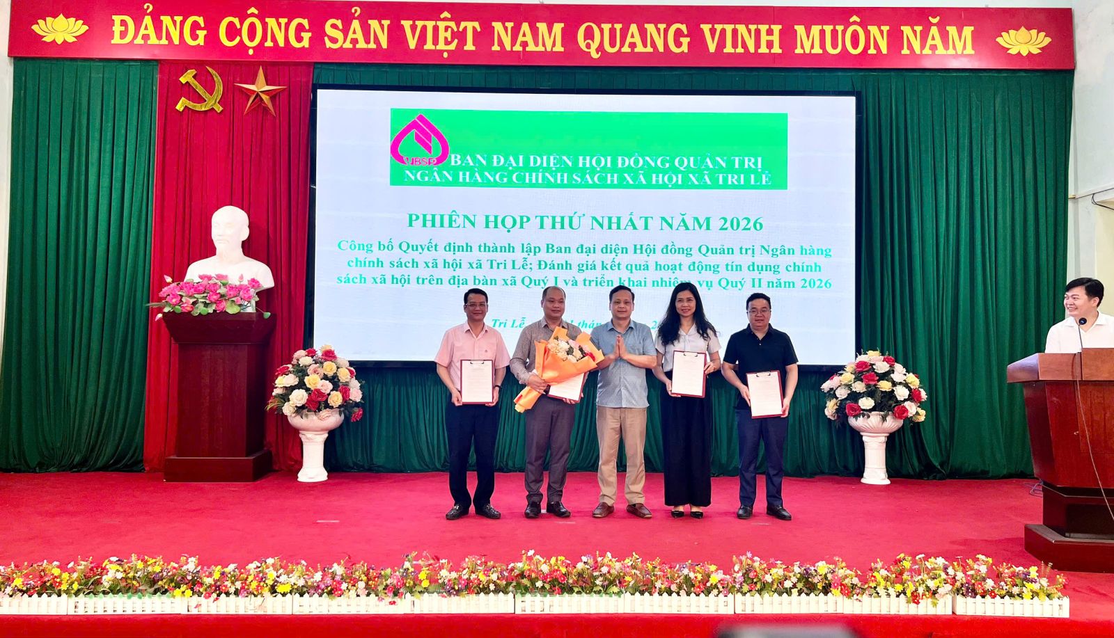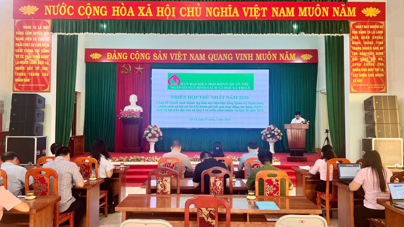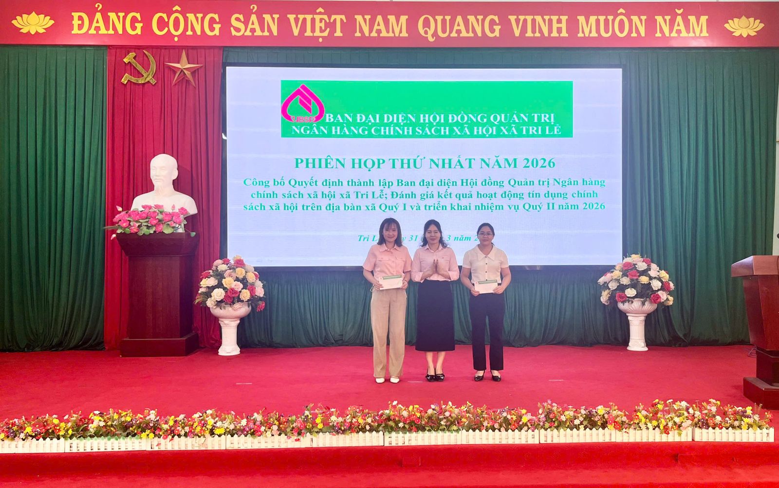 Sáng 31/3/2026, UBND xã Tri Lễ tổ chức Lễ công bố Quyết định thành lập Ban đại diện Hội đồng quản trị Ngân hàng Chính sách xã hội xã. Đánh giá kết quả hoạt động tín dụng chính sách xã hội trên địa bàn Quý I năm 2026 và Triển khai nhiệm vụ Quý II năm 2026. Dự buổi lễ có đồng chí: Linh Minh Huấn, Phó Bí thư Thường trực Đảng ủy; đồng chí Lương Đình Toại, Phó Bí thư Đảng ủy, Chủ tịch UBND xã, Thường trực HĐND xã, Ủy ban MTTQ Việt Nam xã. Dự buổi lễ còn có các đồng chí lãnh đạo Giám đốc Phòng Giao dịch Ngân hàng Chính sách xã hội Văn Quan, cùng các thành viên Ban đại diện Hội đồng quản trị NHCSXH xã, lãnh đạo các ban, ngành, đoàn thể và các đơn vị liên quan.