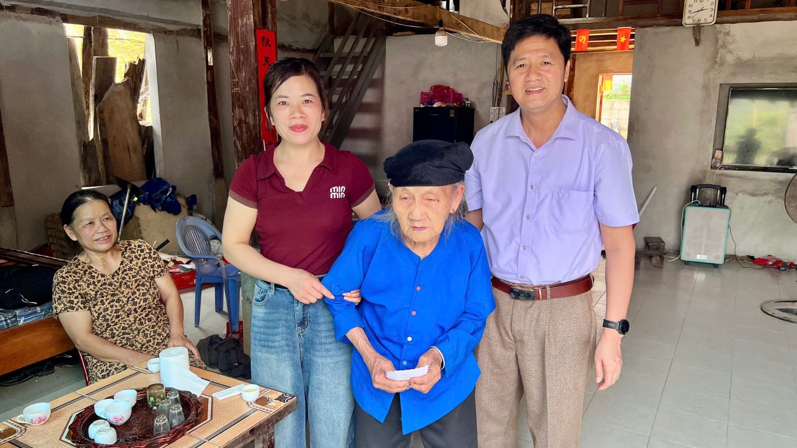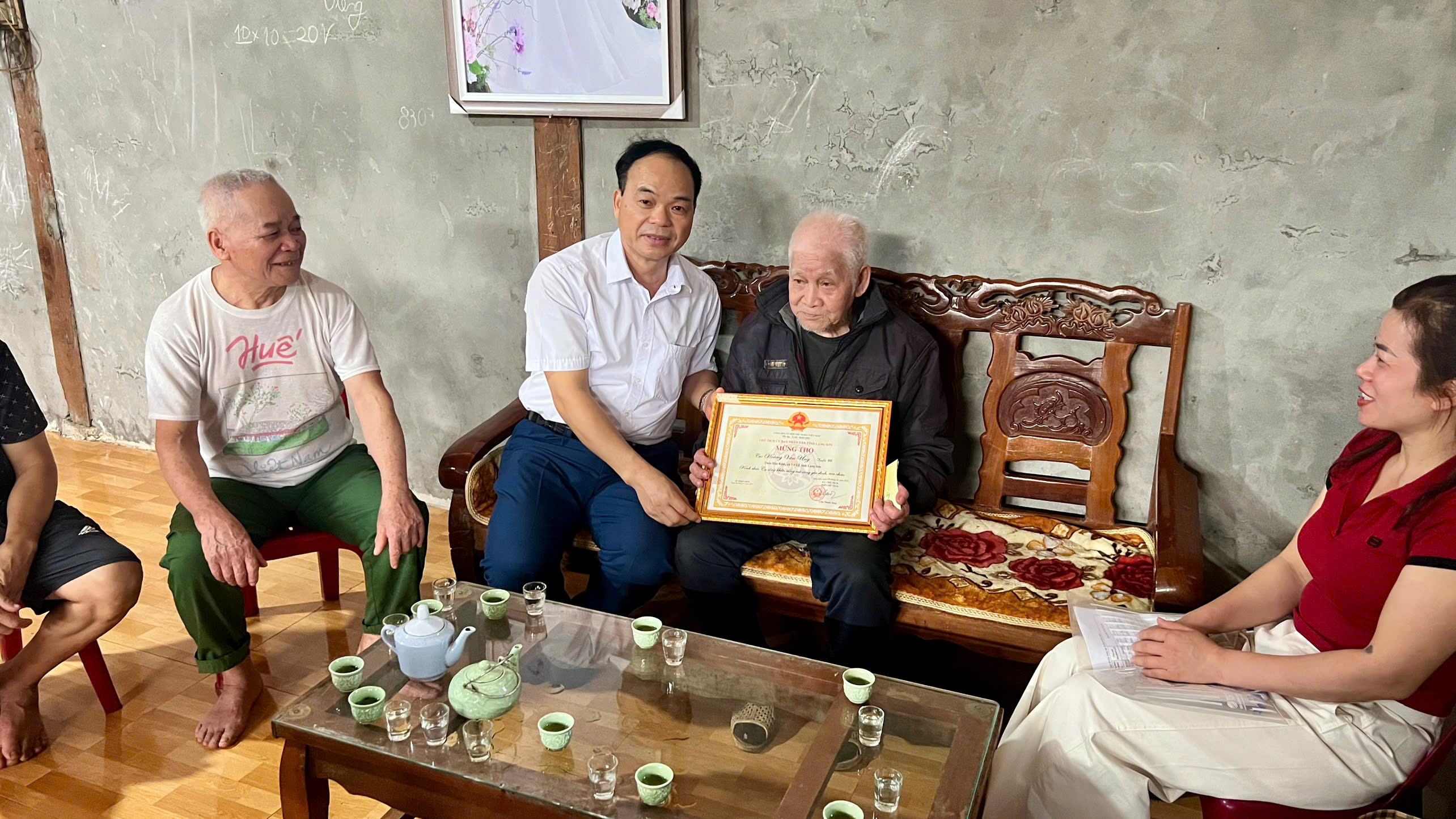 Đoàn tặng quà do Đồng chí Hoàng Văn Quân, Bí thư Đảng ủy, Chủ tịch HĐND xã đã đến thăm tặng quà, chúc thọ, mừng thọ cho 3 cụ tại thôn Bản Só, Bản Rượi, Hữu Nhất.