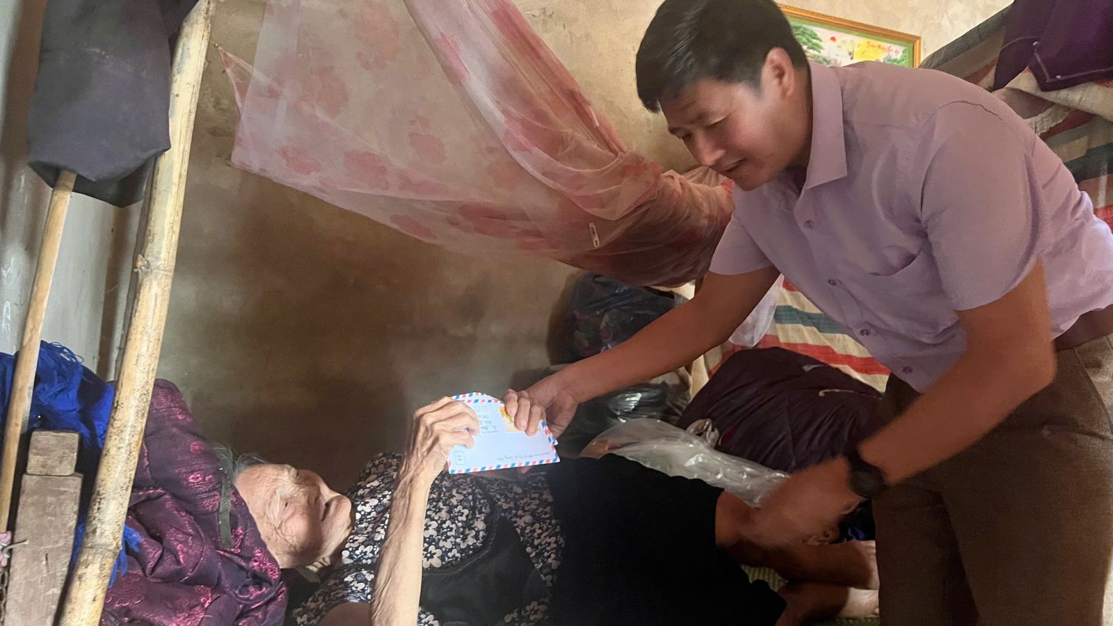 Đoàn tặng quà do đồng chí Ngô Văn Hiền, Phó chủ tịch UBND xã đã đến thăm, chúc thọ, mừng thọ cho 3 cụ tại thôn Bản Téng, Bản Kình và thôn Thồng Duống.