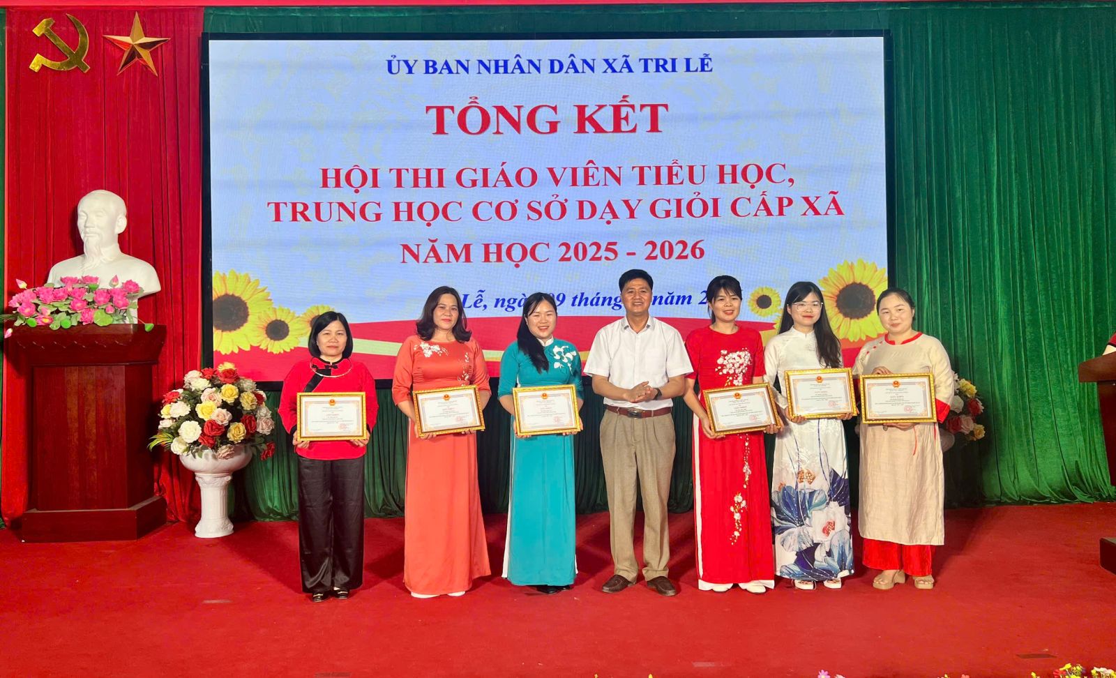 Nhân dịp này, Chủ tịch UBND xã đã tổ chức khen thưởng 6 giáo viên đạt loại giỏi tại hội thi giáo viên chủ nhiệm giỏi và 20 giáo viên được nhận giấy khen đạt giáo viên dạy giỏi cấp xã năm học 2025 - 2026.