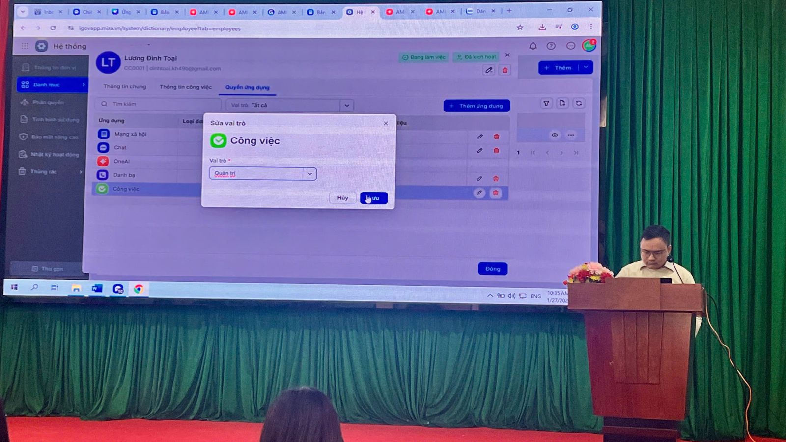 Đại diện Công ty MISA One AI đã trực tiếp hướng dẫn cách đăng nhập, sử dụng các tính năng chính của hệ thống, đồng thời giải đáp những vướng mắc phát sinh trong quá trình thao tác thực tế.