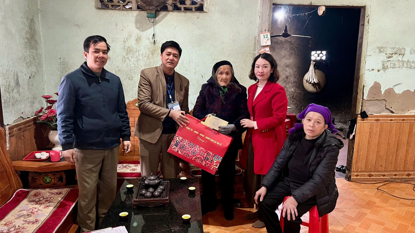Đoàn công tác của xã do đồng chí Hoàng Văn Quân – Bí thư Đảng ủy, Chủ tịch HĐND xã làm Trưởng đoàn đã đến thăm, trao quà và chúc Tết các đồng chí nguyên lãnh đạo xã qua các thời kỳ, cùng các gia đình chính sách, người có công với cách mạng tại các thôn trên địa bàn xã.
