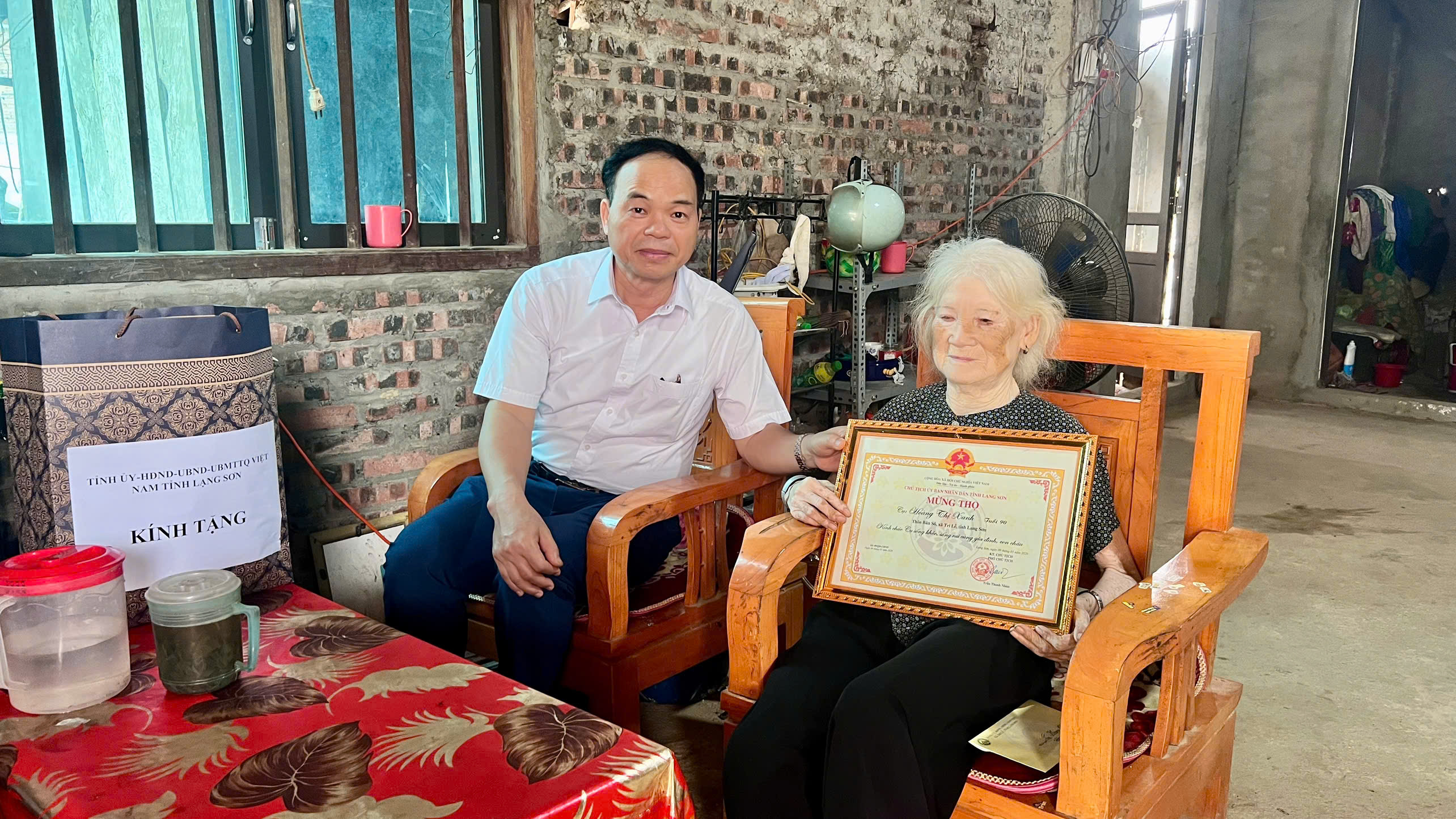 Lãnh đạo Đảng ủy, HĐND, UBND, UB MTTQ Việt Nam xã Tri Lễ thăm chúc mừng thọ và tặng quà Người cao tuổi