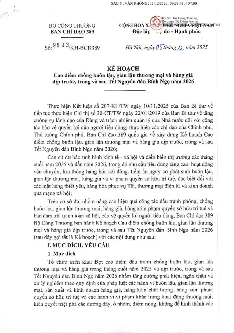 | Số hiệu | 9693/KH-BCĐ389 | Cơ quan ban hành | |