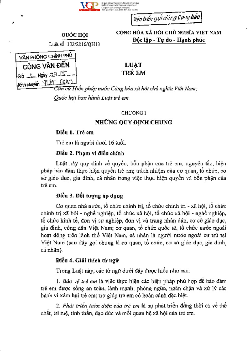 Tiêu đề văn bản | Luật Trẻ em năm 2016 | ||