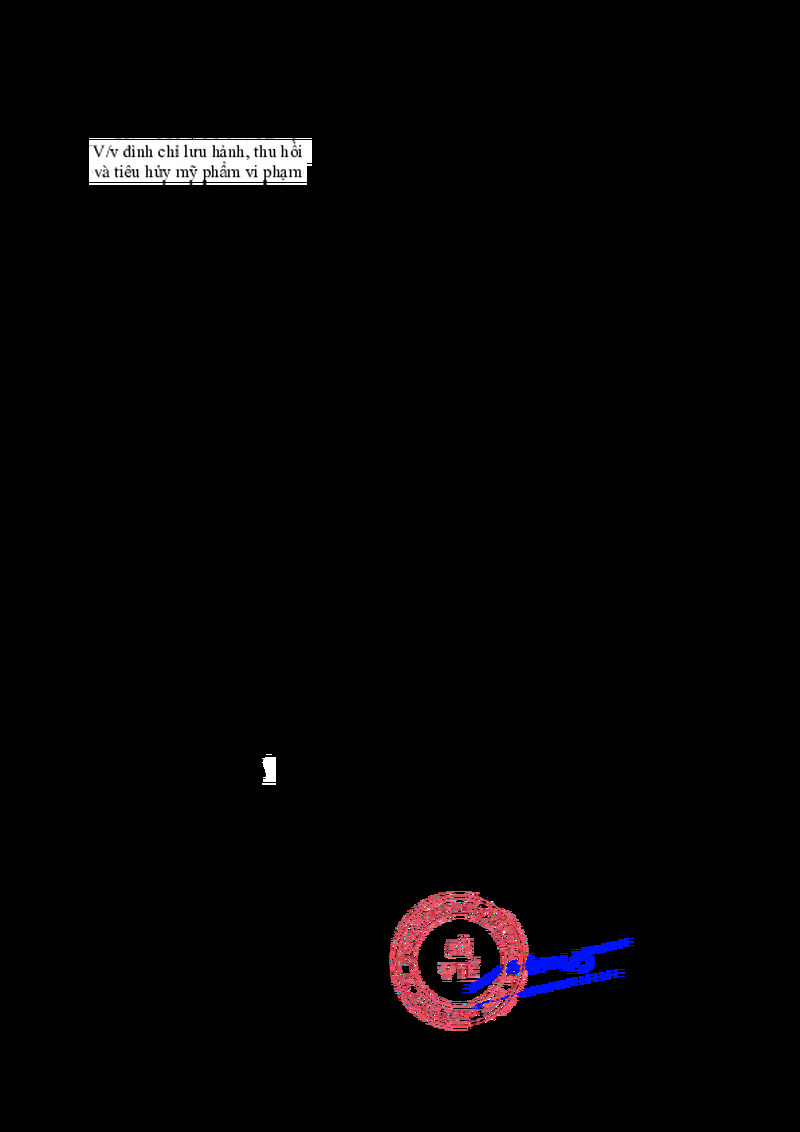 | Tiêu đề văn bản | V/v đình chỉ lưu hành, thu hồi và tiêu hủy mỹ phẩm vi phạm | ||